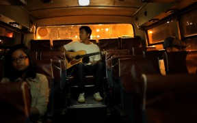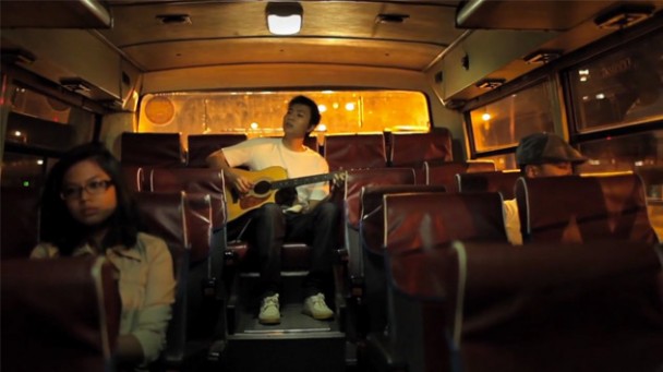 Our concept was to create [or find] a shooting environment, where the lighting conditions would change, but the “stage” would stay the same. A shooting situation where we would use no lighting setup, but oculd give us a variety of looks. Ultimately, we came up with the idea to shoot on a bus that travels throughout Saigon at night. This give us a unique lighting situation that only a city like Saigon could. The bus, used by a large number of the city’s inhabitants, became the metaphor for this sense of uncertainty and the feeling of anonymity that the song captures.