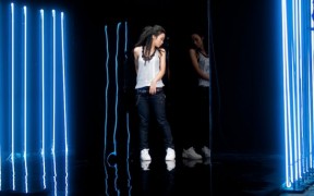 Light and reflection became an interesting metaphor for us. We remembered the influence of Dan Flavin, 1960’s and 70’s light-artist who used flourescents and neon lights as sculptural objects as seen in this reference image. It was the glow of the lights from his installations and the reflections onto the floors that connected us to the moment at the cafe. It was this reflectiveness that we wanted to apply to the video.