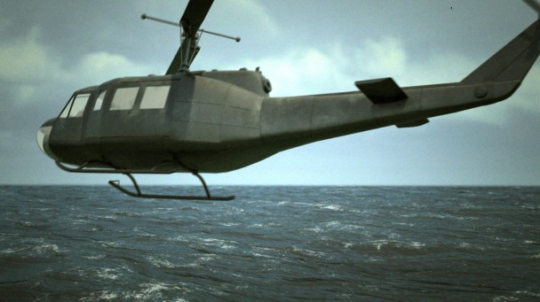 This artwork is Dinh Q. Lê’s first video created entirely in 3D, based on an event that took place on 30 April 1975, at the end of America’s war in Vietnam. With the North Vietnamese Army and Viet Cong marching towards Saigon the Southern Vietnamese Army, American military and USA diplomatic personnel were desperately endeavouring to escape. Hundreds of helicopters packed with escapees were flown toward the South China Sea, searching for aircraft carriers. Many crash-landed when they ran out of fuel; others were pushed off the carriers’ decks into the sea to make room for more to land. Pishkun is a Blackfeet American Indian term referring to the site where roaming bison were killed by driving them over a cliff.